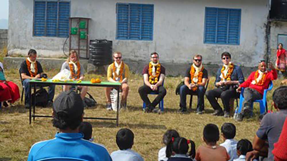 Photos of the welcome ceremony of Logged On and HANDS in Nepal. Computers were installed in the green building several months later by our Nepal team.